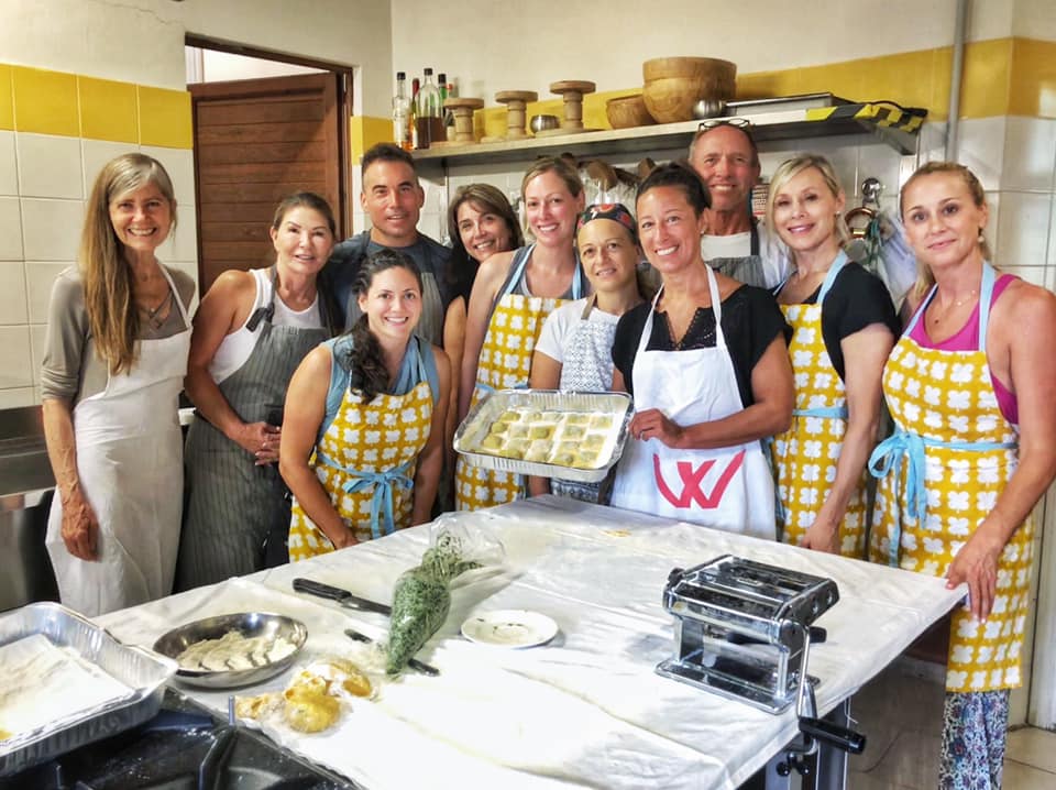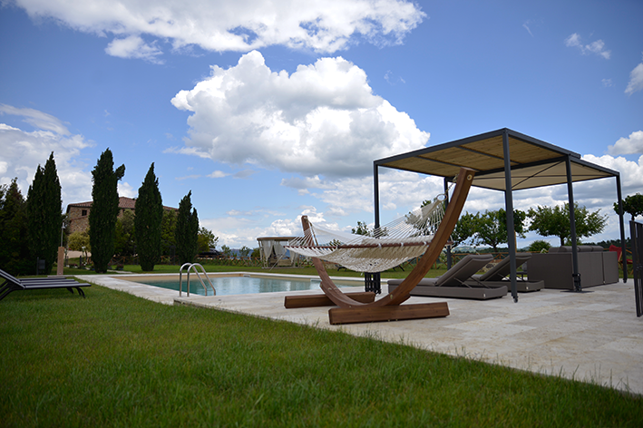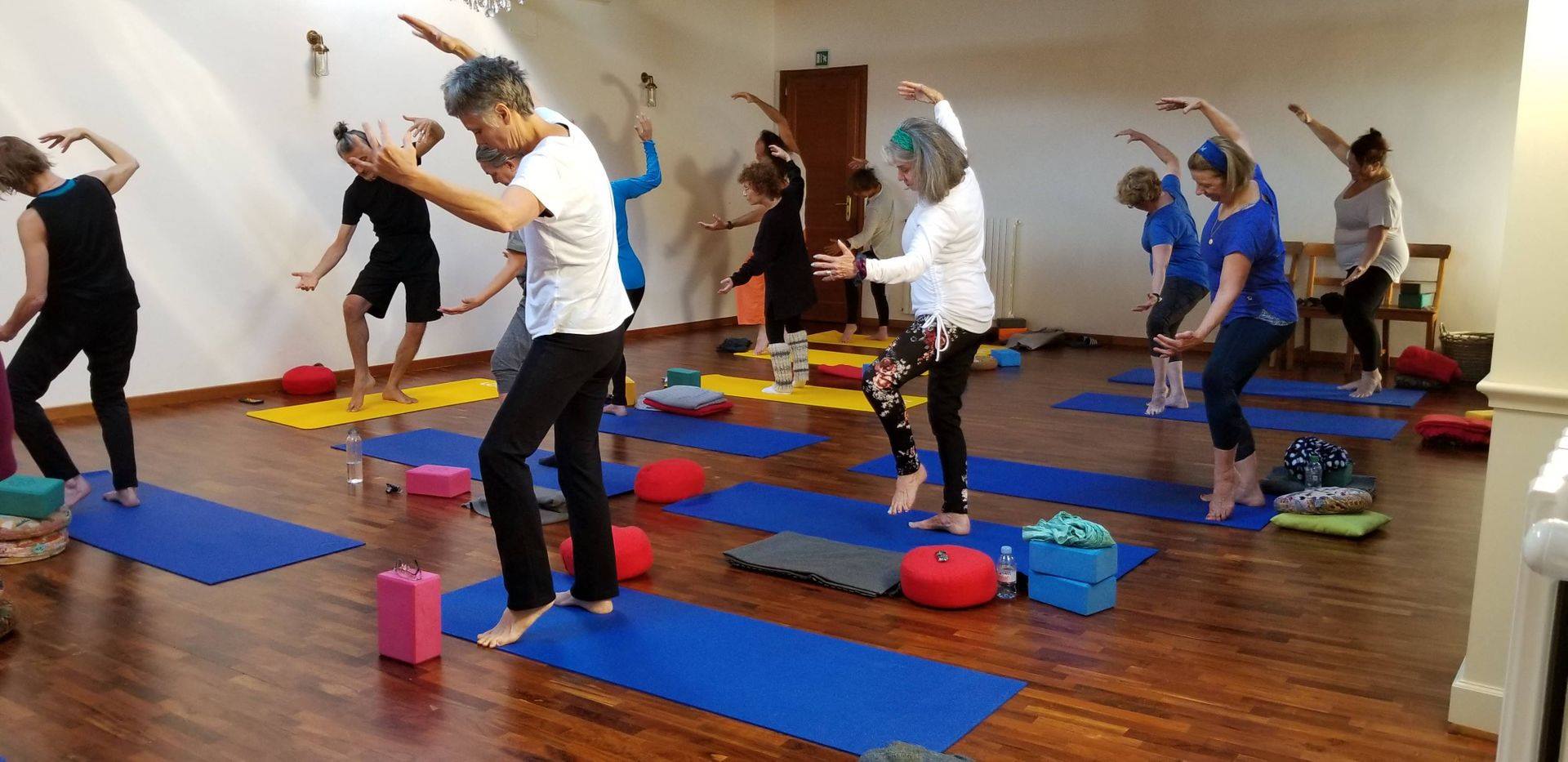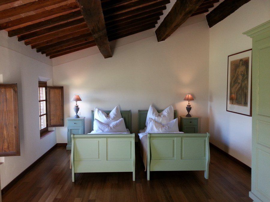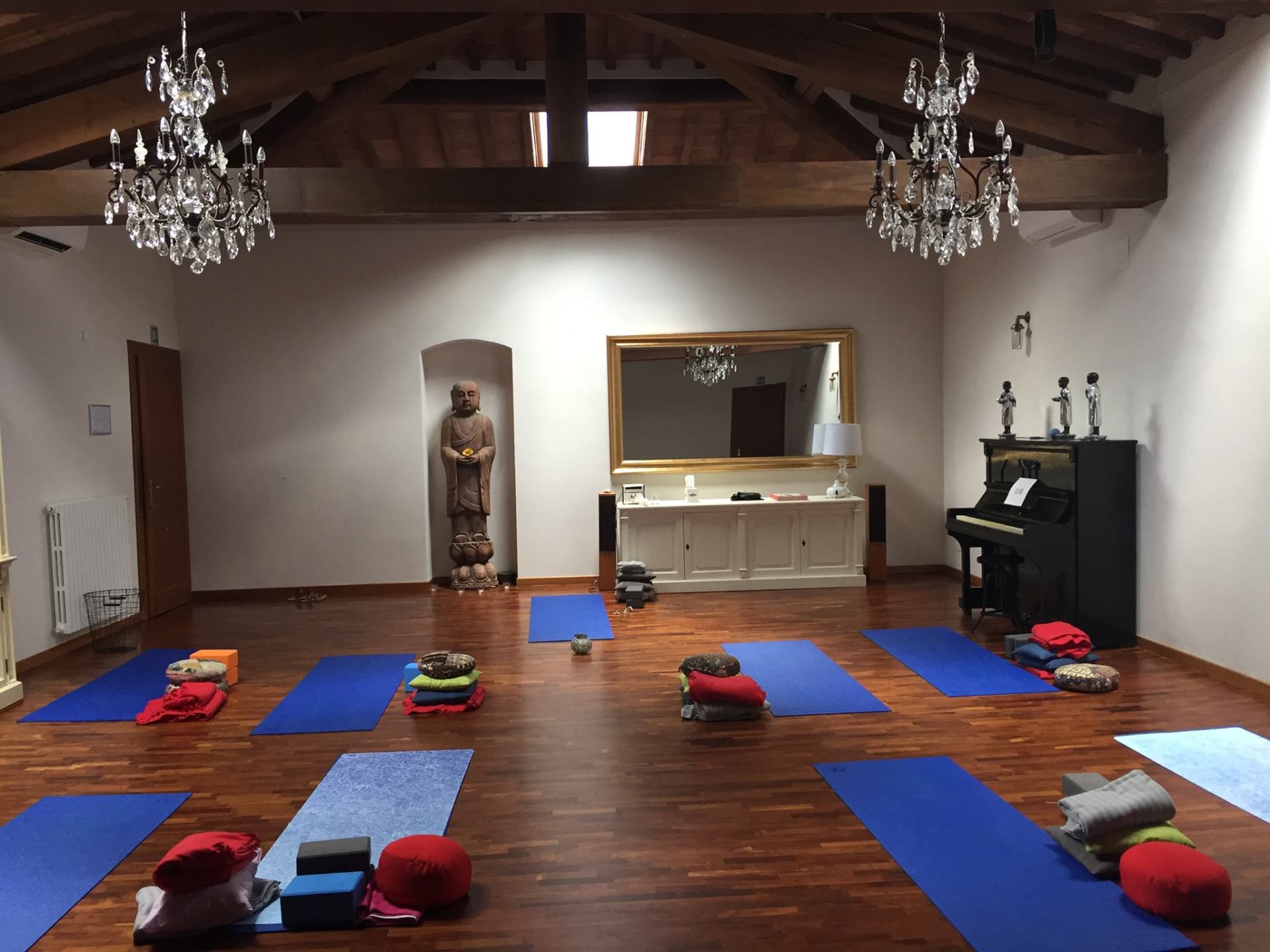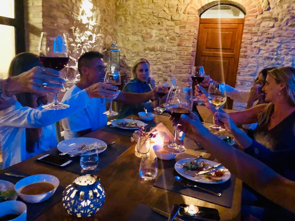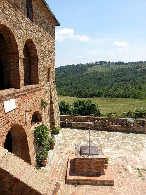 Locanda Cugnanello, our home-base retreat center, is a 800 years old fortified Tuscan villa, which has been fully restored and restructured to offer a luxurious environment for up to 25 people. The spacious indoor studio is a perfect space for yoga, meditation and similar activities. All rooms are with private bathroom. The salt water swimming pool is situated in the relaxing garden area, surrounded by lavender fields and offering a breathtaking view. Guests can enjoy their meals either in the large dining room or outside, on the covered terrace. The kitchen offers healthy and delicious food, especially created for the needs of daily yoga practice, but based on traditional Italian recipes. Once per week pizza is prepared in the traditional Tuscan pizza oven. All around the building there are cosy spaces to relax. Two gyms offer the opportunity for physical exercise. Massages are offered in a separate building on the property. The gorgeous wine-cellar offers a perfect space for wine-tasting.