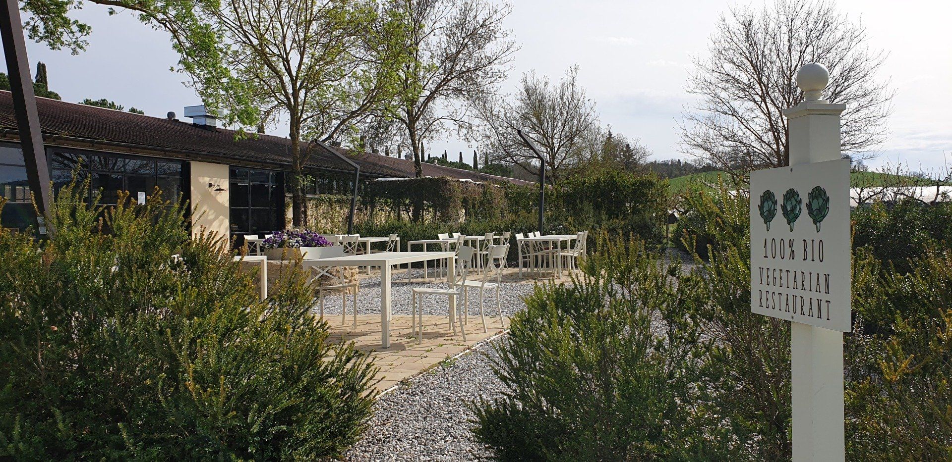 Recently, a brand new indoor and outdoor dining space has been completed, where all meals are served. This restaurant offers delicious vegetarian dishes created with the organic produce grown on our own farm.
