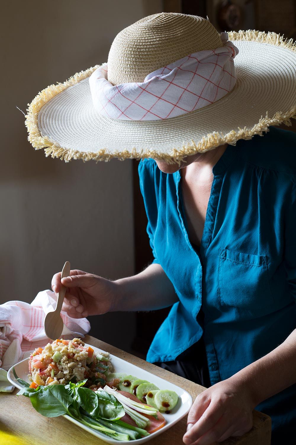 All the materials used are natural i.e. the whitewash, the plaster, the paint, the floor and furniture wax. Even the furniture has been meticulously chosen in naturally treated wood.
